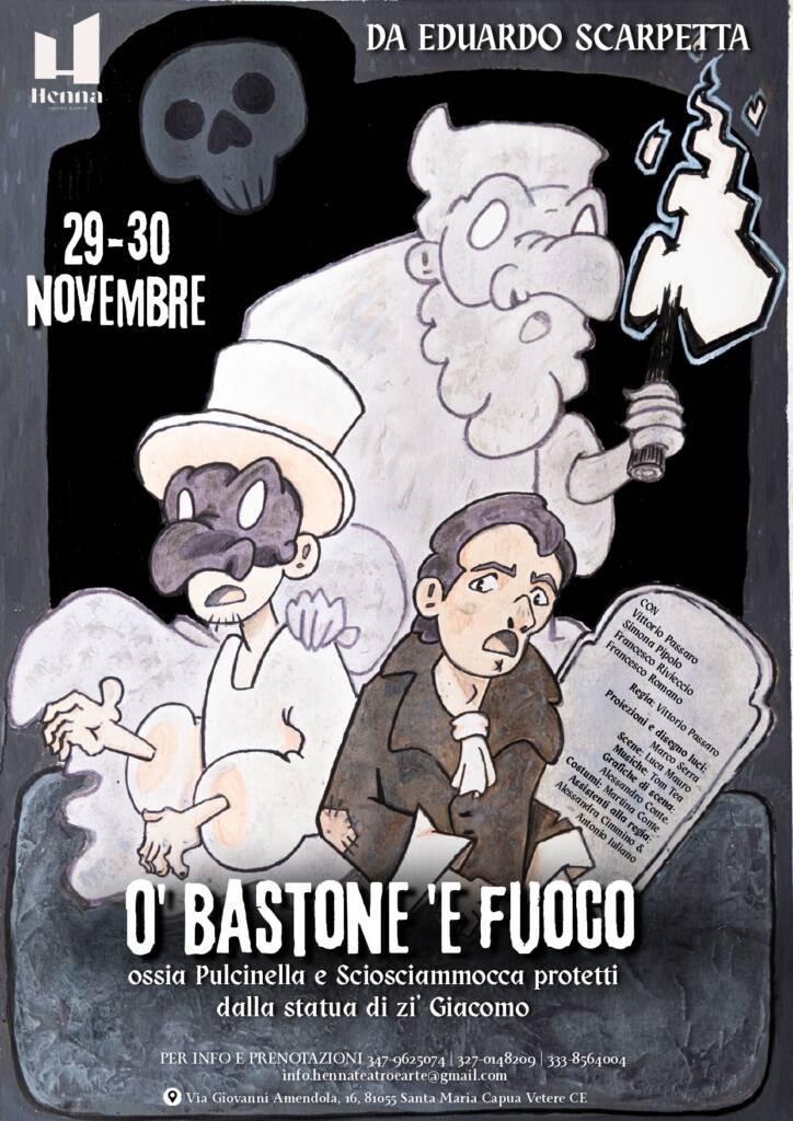 Una riscrittura originale de “’Nu bastone ‘e fuoco” di E. Scarpetta, che condurrà, tra risate e spaventi, lo spettatore a scoprire una storia poco portata sulle scene. Una commedia horror in cui Pulcinella ci farà viaggiare in un mondo che molto spesso appare vile e complicato, quello del napoletano medio che si piange addosso ma che è ricco di risorse e che se volesse potrebbe rendere questo suo “essere geniale nel raggiro” fondamentale per il futuro e non qualcosa su cui crogiolarsi e vantarsi per tirare a campare. E chissà con l’augurio di lasciare ai nostri figli e nipoti un mondo migliore di quello che abbiamo ereditato...