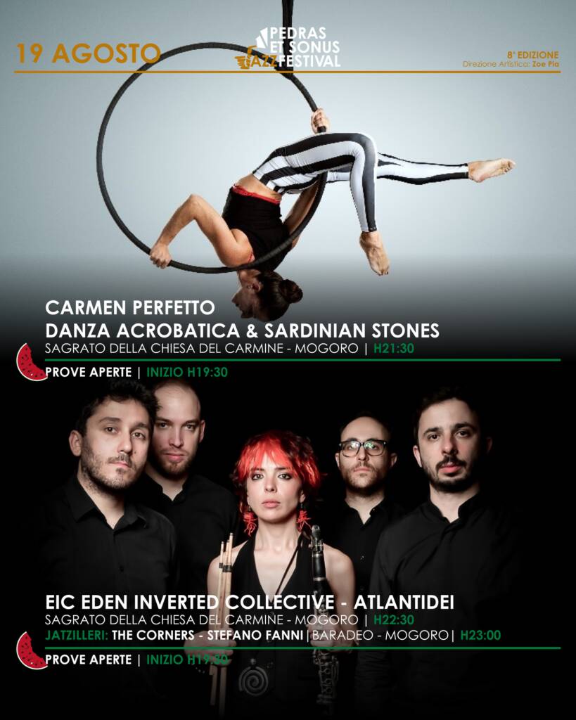 All’interno dell’affascinante cornice del Pedras et Sonus Jazz Festival, prende vita Sardinian Stones, un insieme di performance di acrobatica aerea pensate come un viaggio sospeso tra mito, musica e movimento. In dialogo con il concerto Atlantidei del collettivo musicale EIC – Eden Inverted Collective, l’esibizione traccia rotte invisibili tra cielo e terra, evocando le antiche leggende legate alla misteriosa isola di Atlantide e alla Sardegna, sua possibile erede nascosta secondo le mappe del Cinquecento.