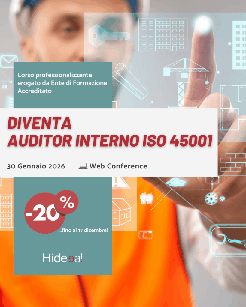 Specializzati come Auditor Interno ISO 45001! Corso online pratico per gestire audit, individuare non conformità e migliorare la sicurezza sul lavoro. Promo -20% attiva fino al 17 dicembre!