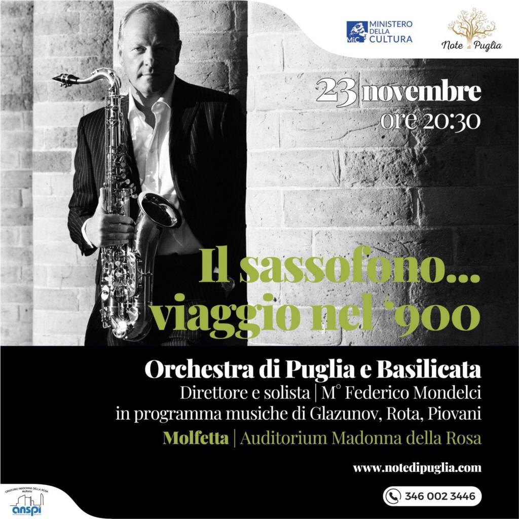 Interprete solista è il sassofonista Federico Mondelci, figura di spicco del concertismo mondiale e Orchestra di Puglia e Basilicata
