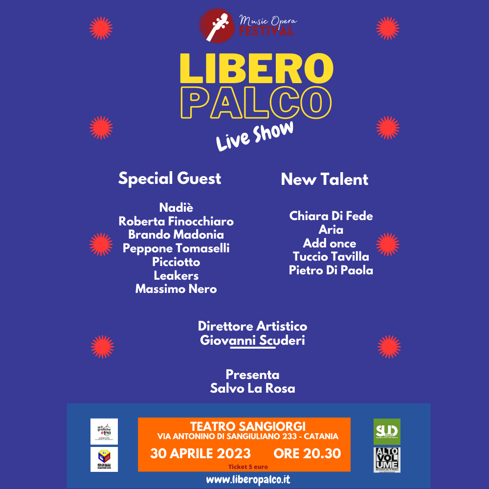 LiberoPalco è il Talent live show prodotto da Music Opera Festival con la direzione artistica di Giovanni Scuderi.