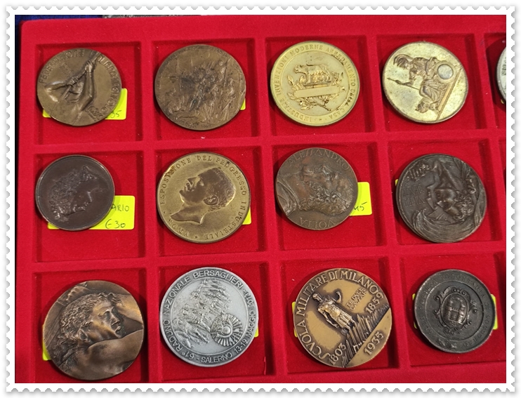 Monete antiche e moderne, francobolli, banconote italiane ed estere, decorazioni militari, cartoline, storia postale, gettoni, tokens, stampe, orologi, folder, bollettini illustrativi, interi postali, album, immagini sacre, carte telefoniche, quotidiani, locandine, libri, fumetti, figurine, calendari militari, penne da scrittura, pins, spille, oggettistica varia, accessori e raccoglitori per collezioni.
