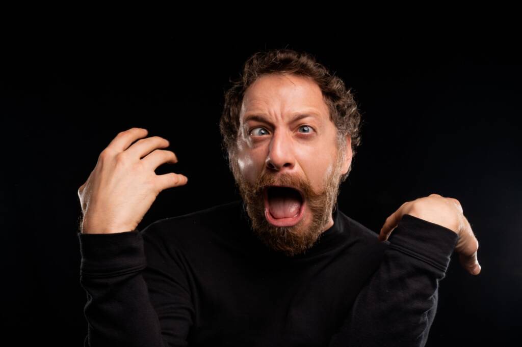 Uno spettacolo tragicomico sulla salute mentale. Una stand-up “manuale”, dove il protagonista iracondo intraprende un viaggio allucinato dentro la propria testa.
