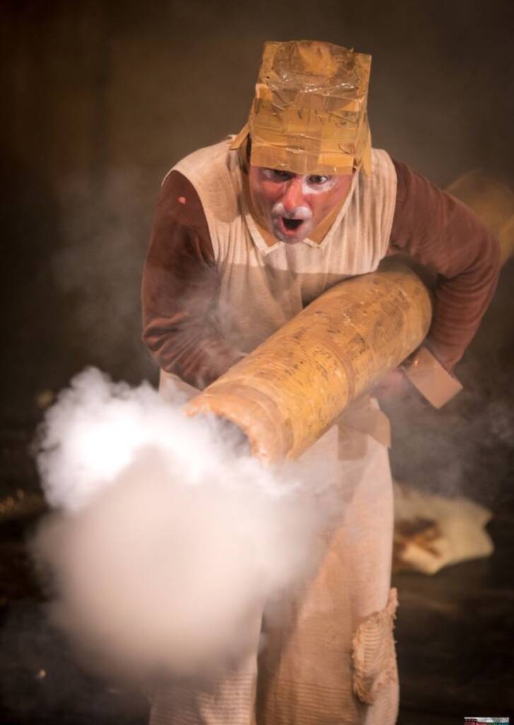 e imballaggi. Due buffi personaggi trasporteranno il pubblico in un divertente viaggio surreale dove la fantasia è l'ingrediente principale di questo mix tra circo e teatro.