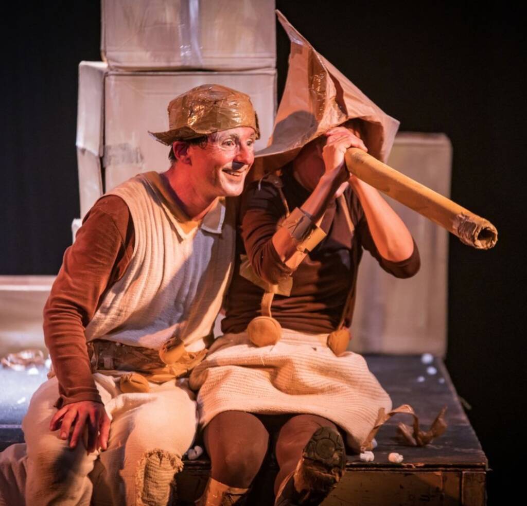 e imballaggi. Due buffi personaggi trasporteranno il pubblico in un divertente viaggio surreale dove la fantasia è l'ingrediente principale di questo mix tra circo e teatro.