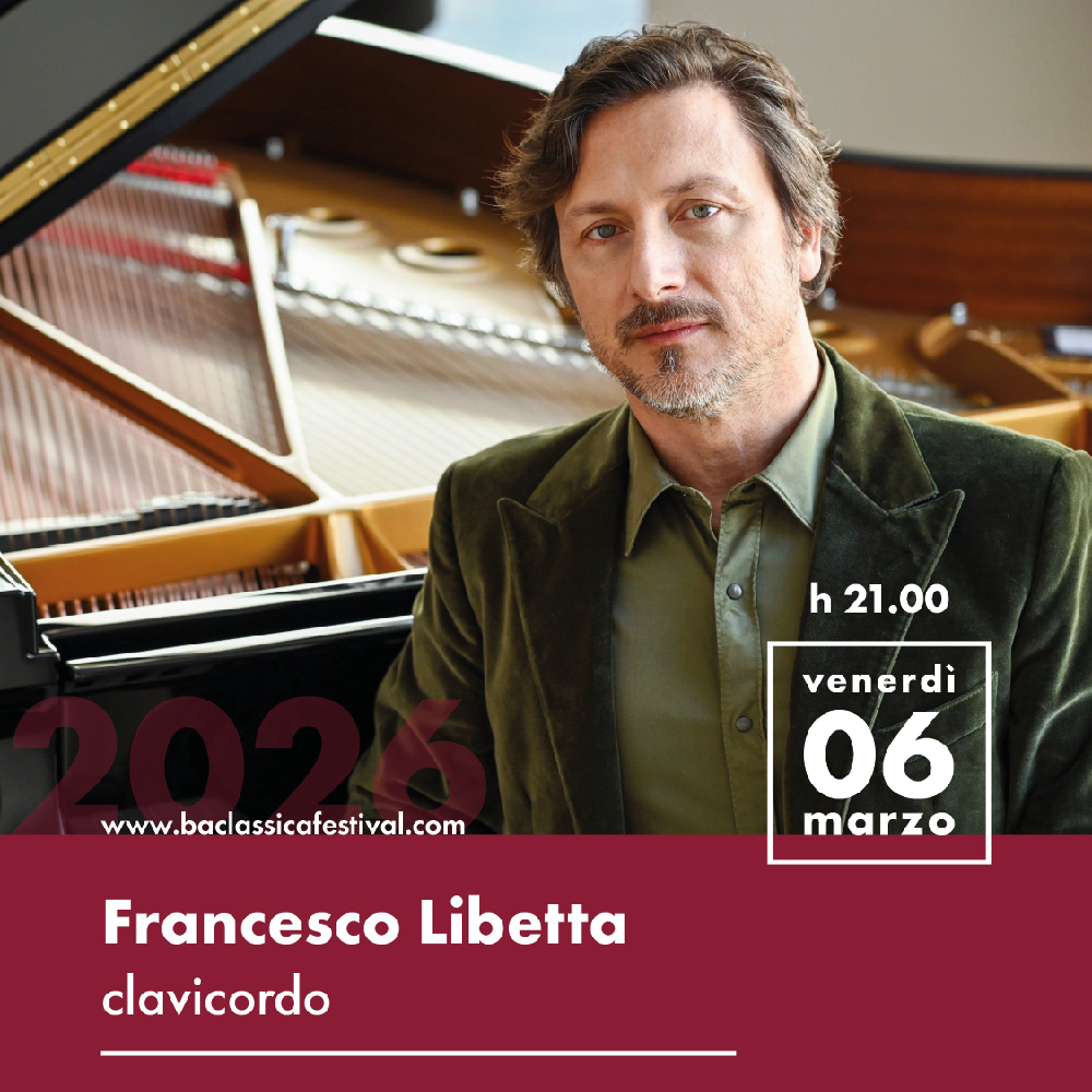 In programma PACHELBEL, PAISIELLO, BEETHOVEN, GALUPPI, PASQUINI, SANSEVERINO, MOZART, PH. E. BACH, J.S. BACH, CHOPIN, CAPOGROSSO, PORENA, SOLLIMA, D. SCARLATTI.