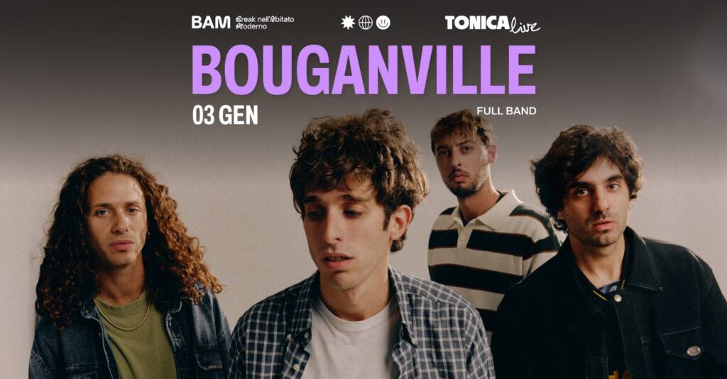 I Bouganville sono una band alternative nata a Roma dall’intesa artistica tra Luciano Zirilli (voce, chitarra, piano), Luca Grillo (chitarra, voce), Gian Luca Fraddosio (basso, synth) e Luca Taurmino (batteria).