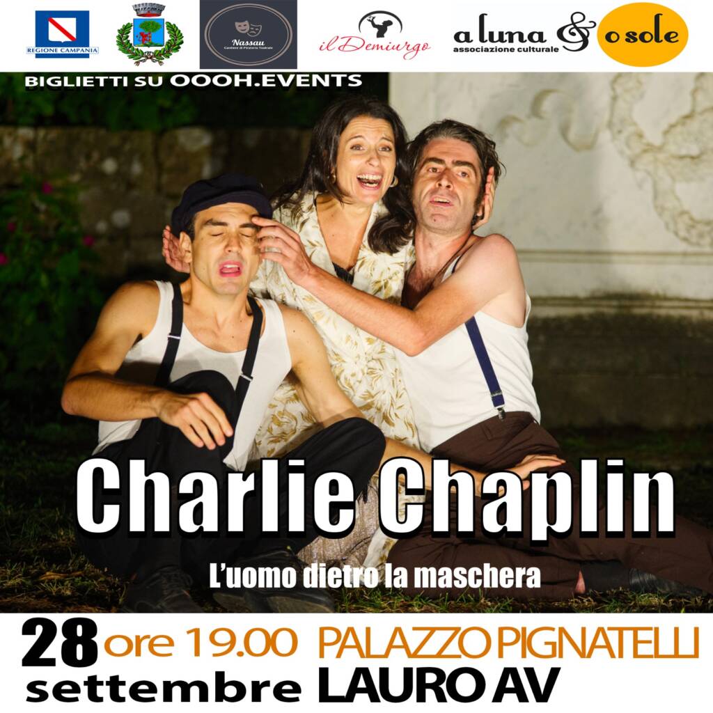 Nella meravigliosa cornice del Palazzo Pignatelli di Lauro "CHARLIE CHAPLIN: L'UOMO DIETRO LA MASCHERA" Spettacolo di punta de Il Demiurgo con il candidato ai nastri d'argento Mario Autore nei panni di Charlie Chaplin, accompagnato in scena da Chiara Vitiello e Franco Nappi.