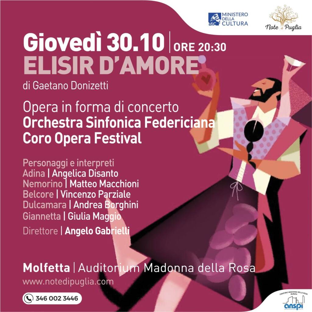 Note di Puglia porta a Molfetta la grande lirica con l’Orchestra Sinfonica Federiciana e la direzione del M° Angelo Gabrielli ospiti della nostra stagione concertistica, in una delle opere più amate di sempre: 𝗟’𝗲𝗹𝗶𝘀𝗶𝗿 𝗱’𝗮𝗺𝗼𝗿𝗲 𝗱𝗶 𝗗𝗼𝗻𝗶𝘇𝗲𝘁𝘁𝗶 𝗶𝗻 𝗳𝗼𝗿𝗺𝗮 𝗱𝗶 𝗰𝗼𝗻𝗰𝗲𝗿𝘁𝗼.