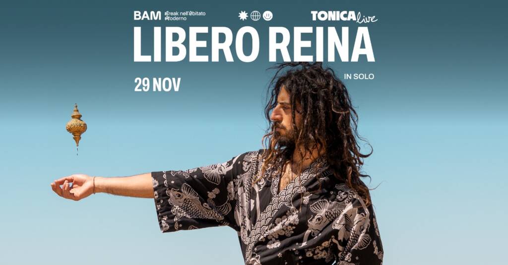 Libero Reina è un musicista siciliano che ha scelto di vivere tra le due sponde del Mediterraneo: la Sicilia, terra delle radici, e la Tunisia, culla della ricerca. Nella sua musica, strumenti arcaici e sonorità elettroniche s’intrecciano per raccontare un’identità senza confini, dando voce a storie nate tra la sabbia e il mare, tra la memoria e la contemporaneità. Attraverso performance elettroniche mediterranee, spettacoli teatrali e contenuti digitali condivisi con una grande comunità internazionale, fa emergere un patrimonio culturale vivo, che molti di noi sentono pulsare dentro senza riuscire a definirlo. La sua musica diventa così il tassello mancante, un rifugio sonoro e culturale che riempie un vuoto, soddisfa un bisogno profondo di connessione e appartenenza, e ricorda a ciascuno di noi che il Mediterraneo è una sola grande storia, scritta da popoli diversi con lo stesso cuore.