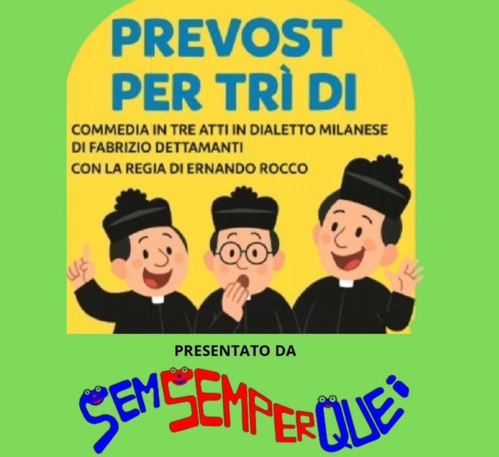 La Compagnia teatrale SEM SEMPER QUEI propone la frizzante commedia in dialetto milanese "PREVOST PER TRÌ DI", testo in tre atti di Fabrizio Dettamanti.