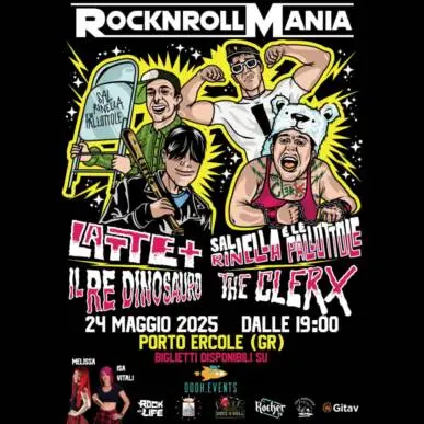 Rock'n'roll Mania 2025 nasce dal trionfo di "Botte di Natale", svoltosi a Orbetello nel dicembre 2024. L'organizzazione "Botte Rock N Roll", creatrice di eventi a più stage, ha deciso di replicare l’incredibile spettacolo il 24 maggio 2025, a partire dalle 18.00 fino a mezzanotte, a Porto Ercole, nel cuore della Maremma!