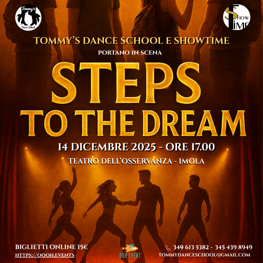 “Steps to the Dream” è uno spettacolo di danza emozionante e coinvolgente che racconta, attraverso il movimento, la forza dei sogni e la passione per la danza. Un viaggio tra stili diversi, energia, emozioni e talento. Prenota il biglietto! Posti limitati!