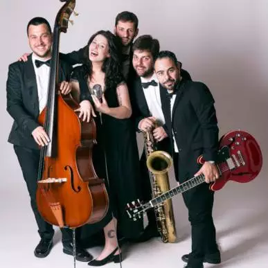 Il Trio Borghese si esibisce in quintetto, con batteria e sax conferendo al proprio sound un carattere electroswing.