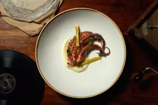 Polpo arrostito, purè affumicato, porro e salsa ponzu Roasted octopus°, smoked mashed potato, leek and “ponzu” sauce