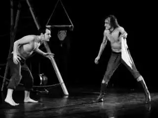 Improvvisamente cessa il legame con il passato: corde, reti e lacci tengono in piedi la situazione. Si gioca alla vita in un ideogramma. Il tratto, tradotto in tre dimensioni, sviluppa volumi triangolari diretti verso l’alto che coesistono con linee orizzontali: ma in verticale si muove solo l’uomo.