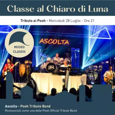 Mercoledì 28 luglio a Classe al Chiaro di Luna c’è la grande musica italia con gli ASCOLTA, una delle POOH OFFICIAL TRIBUTE BAND: preparatevi a cantare insieme a noi!