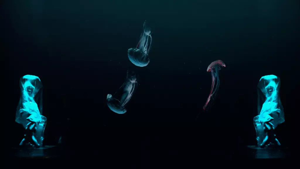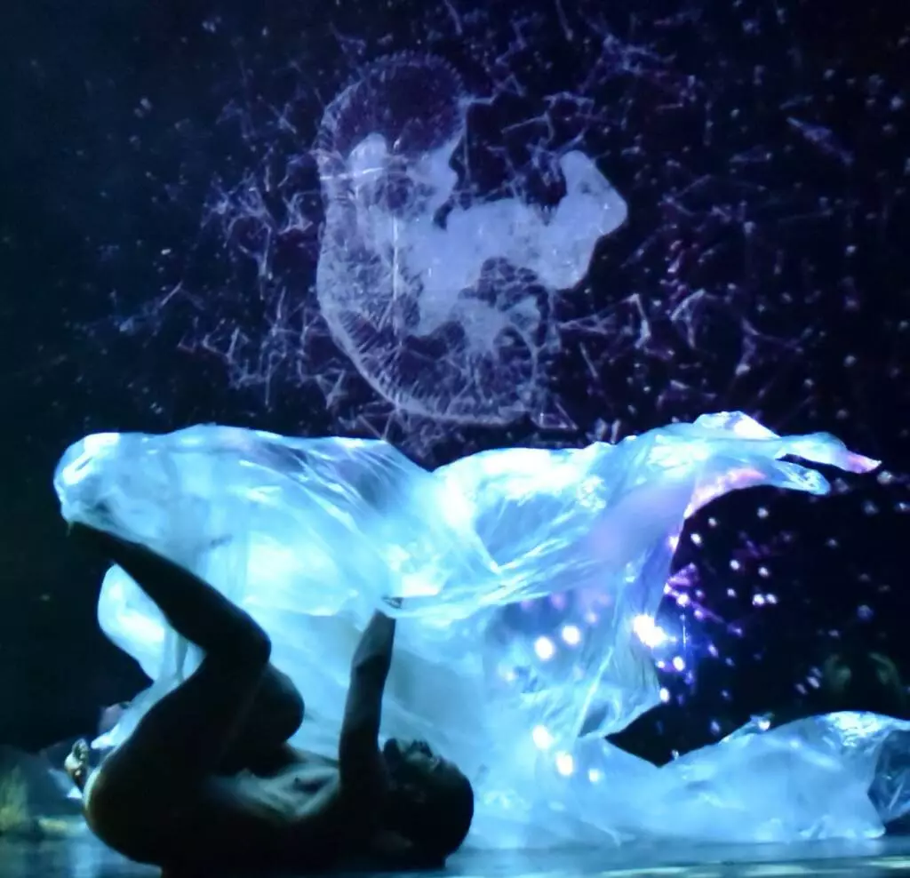 Nell’ultima tappa del viaggio le profondità degli abissi riempiono la scena; seppur nel nostro immaginario possano esser infinite, sono ormai sature di plastiche: i danzatori, moltiplicandosi e sparendo, emulano la dimensione marina nella sua sofferenza. Boomerang gli Illusionisti della Danza, supportati da scelte registiche altamente ipnotiche, l’uso magistrale di luci e da musiche evocative, catturano letteralmente lo spettatore in un viaggio che ciascuno di noi dovrebbe intraprendere per comprendere come ad ogni nostra decisione o azione, consapevole o meno, ne corrispondono di uguali e contrarie anche quelle che mettiamo in atto nei confronti dell’ambiente in cui viviamo.