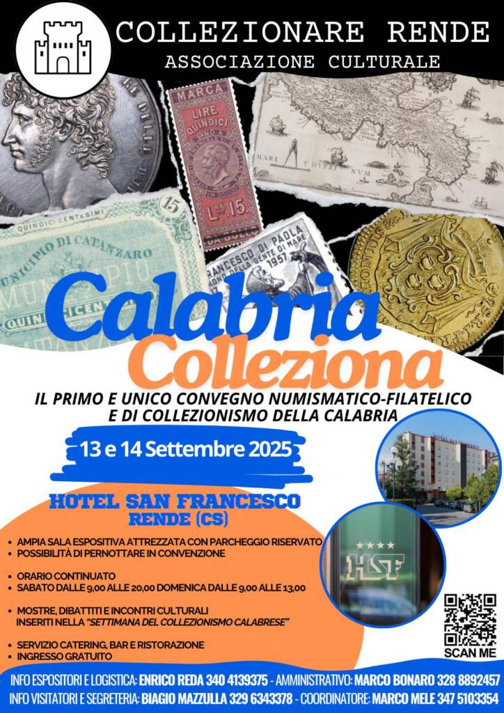 L’evento, organizzato dall’Associazione Culturale Collezionare Rende, si terrà sabato 13 e domenica 14 settembre 2025 presso l’Hotel San Francesco di Rende (CS), e si preannuncia come un appuntamento imperdibile per appassionati, studiosi e curiosi provenienti da tutto il territorio nazionale.