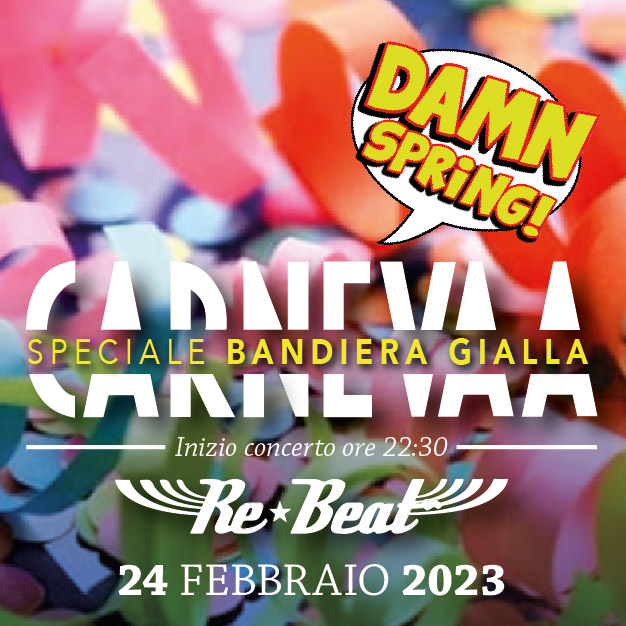 Festeggiamo insieme il Carnevale ambrosiano con una Speciale Bandiera Gialla: vi aspettano la musica dal vivo dei Re-Beat, il dj set Damn Spring, giocolieri, ballerine "volanti" e spettacoli a sorpresa.