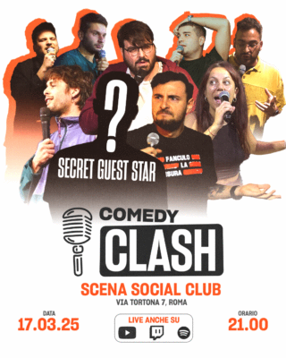 Comedy Clash arriva al terzo appuntamento! Il nuovo Stand Up Comedy show ideato da Bryan Galli Angeli dove diversi comici si alterneranno sul palco per farvi passare un’ora e mezza di puro divertimento con battute taglienti e irriverenti.