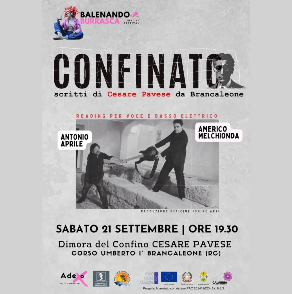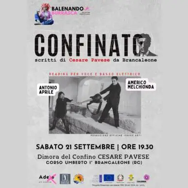 Una originale perfomance su Cesare Pavese, scrittore, poeta, critico letterario vissuto nella prima metà del Novecento. Accusato di antifascismo, Pavese viene arrestato e condannato a tre anni di confino. Resta a Brancaleone in provincia di Reggio Calabria dal 4 agosto 1935 al 15 marzo del 1936 dove è rimasta ancora intatta la casa dove visse: il letto, la scrivania, la lampada a carburo, l’umidità sui pavimenti e la solitudine dello scrittore.