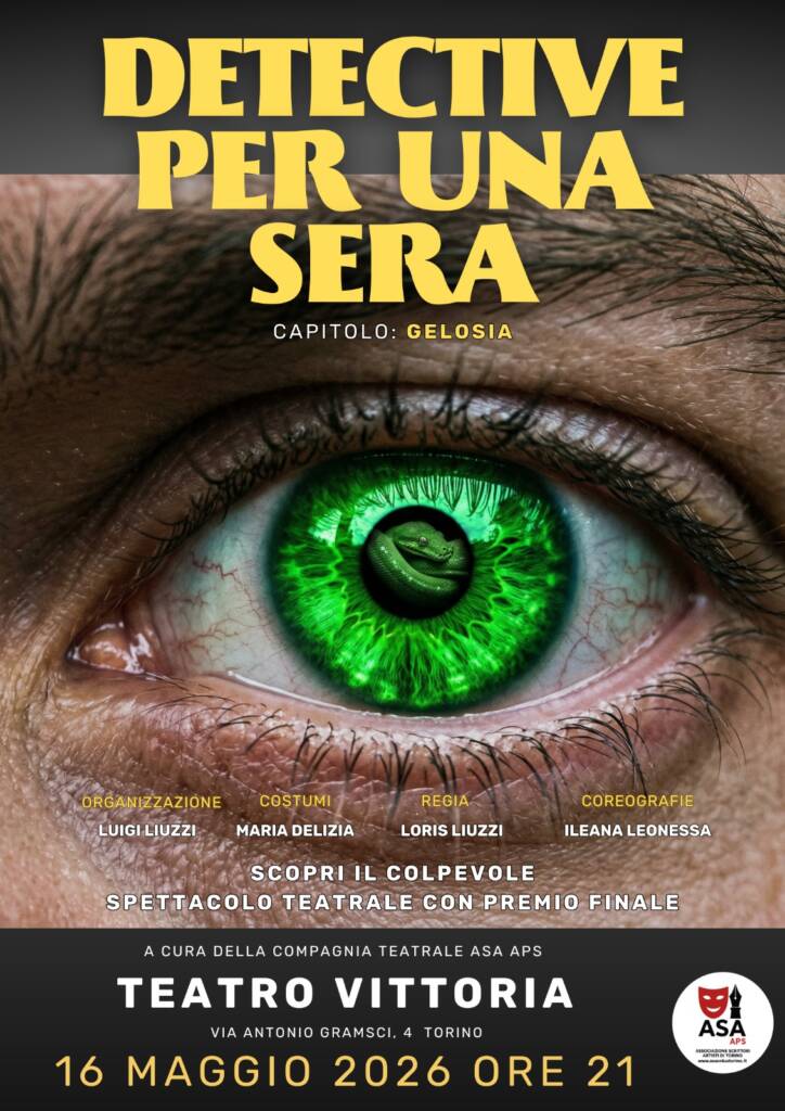 Diventa detective per una sera: da solo o in squadra segui indizi, svela trame nascoste e scopri le contraddizioni di una storia comica sulla la gelosia. Tanti colpi di scena: ci si diverte...da morire! Per i primi 3 classificati, premi finali 🎭🕵️‍♂️🎁