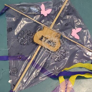 Questo laboratorio permette ai bambini di creare il loro aquilone utilizzando sacchetti di plastica, carta crespa, nastri colorati e bastoncini di legno e cannucce colorate. A seconda della loro creatività potranno realizzare aquiloni a forma di pesciolino o di uccellino oppure con una forma astratta.