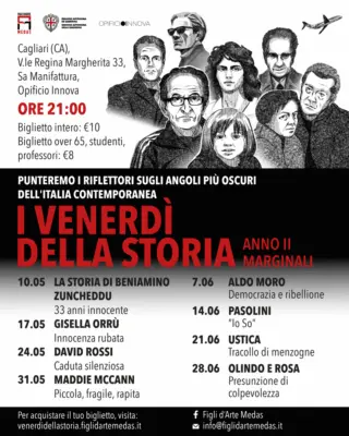 Quest'anno, immergiti in "MARGINALI", un tema che celebra l'esplorazione artistica al di fuori dei confini mainstream, offrendoti una prospettiva fresca e avvincente sui momenti salienti del nostro passato. Guidati da Gianluca Medas, insieme a talenti come Fabio Coronas e Antonio Cauterucci, questi incontri promettono di rinnovare il tuo legame con la storia, trasformandola in un'esperienza vibrante e attuale.