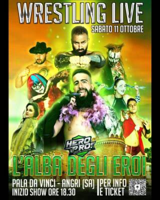 Preparati a vivere “L’Alba degli Eroi”: il debutto della Hero Pro! Wrestling ad Angri (SA)! Una serata di emozioni, azione e grandi match con i migliori talenti italiani. Storie, colpi di scena e spettacolo per tutta la famiglia. Non mancare!