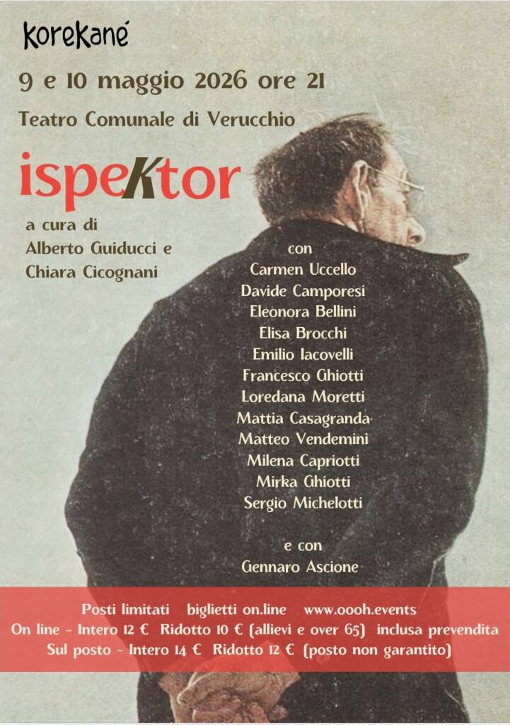 In una piccola realtà di provincia, l’arrivo inatteso di un presunto ispettore mette in allarme l’intera comunità. Tra fraintendimenti, ambizioni e tentativi maldestri di fare bella figura, i personaggi si muovono in un intreccio ironico e incalzante, dove ogni gesto rivela fragilità, desideri e contraddizioni. “ispektor” accompagna lo spettatore dentro un gioco teatrale corale, fatto di ritmo, relazioni e sguardi che si rincorrono, fino a un finale che lascia emergere tutta l’umanità dei suoi protagonisti.