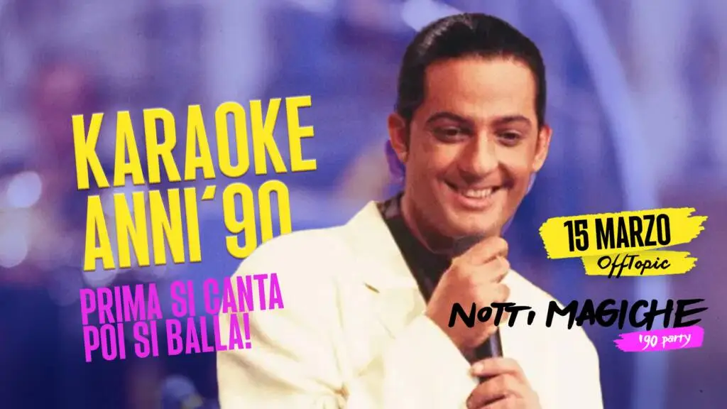 Dalle 22 a mezzanotte la sala di Notti Magiche sarà a vostra completa disposizione per cantare i brani iconici degli anni 90: dai grandi classici come “Notti magiche” a “50 special”, passando per 883, Vasco Rossi e molti altri.