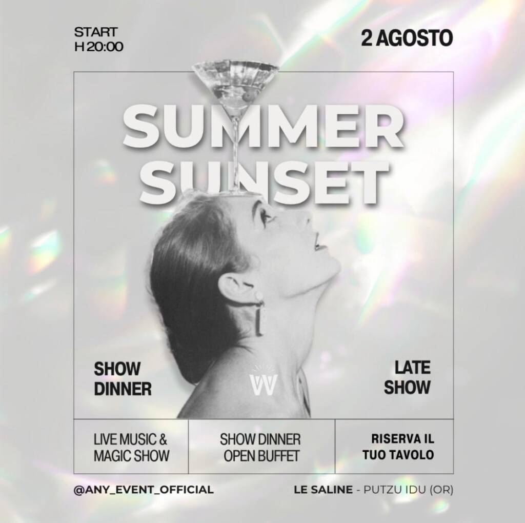 Sabato 2 agosto vivi il Magic Summer Sunset: cena a buffet tra sapori mediterranei, musica dal vivo e magia.