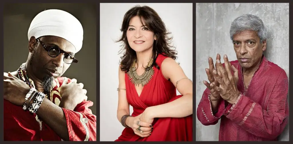 Omar Sosa è un pianista e compositore cubano di fama internazionale, noto per la sua capacità di fondere jazz, musica afrocubana e suoni elettronici in composizioni originali e coinvolgenti. Maria Pia De Vito è una delle voci più versatili e apprezzate del panorama musicale italiano, famosa per la sua abilità nel mescolare jazz, musica tradizionale e improvvisazione. Trilok Gurtu, leggendario percussionista indiano, ha collaborato con alcuni dei più grandi nomi della musica mondiale, portando la sua maestria ritmica in ogni performance.