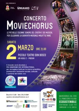 Moviechorus ci farà cantare, ballare e divertire in una serata unica Il cui ricavato al netto delle spese organizzative, verrà interamente devoluto a supporto delle attività dell’associazione p63 Sindrome E.E.C. International APS impegnata dal 2009 a favore del malato raro, cargiver e rete sociale di supporto.