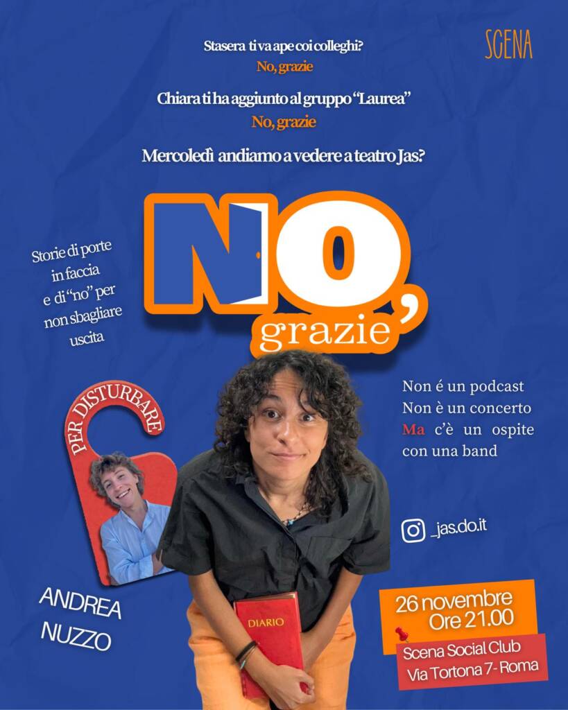 “NO, GRAZIE” non è un podcast, non è un concerto e non è uno spettacolo di stand up comedy.