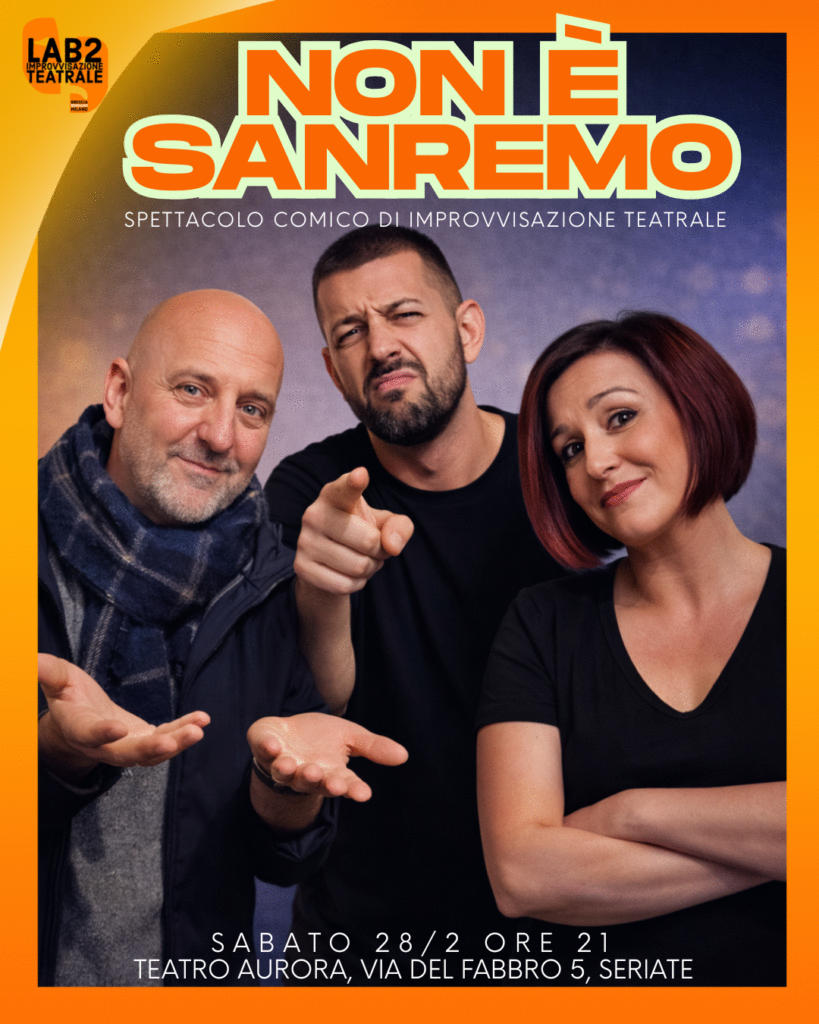 Uno spettacolo comico di improvvisazione che non ti farà rimpiangere Sanremo! Un’ora e mezza di storie completamente improvvisate ad altissimo contenuto di risate. Con qualche pausa canzone (improvvisata). Non è Sanremo, è molto meglio!