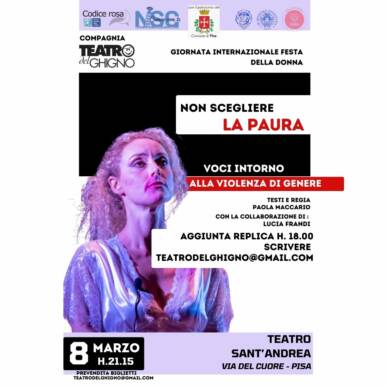 Sono quasi 7 milioni, secondo i dati Istat, le donne che nel corso della propria vita hanno subito una forma di abuso, e troppo frequentemente subiscono in silenzio per cultura, per paura, per fragilità .Chi giustifica, chi minimizza, chi tace, è complice e noi del Teatro del Ghigno riteniamo che sia necessario sensibilizzare tutto l’anno e non solo il 25 di Novembre. Lo spettacolo è stato selezionato da Pasquale Guadagno, orfano di femminicidio, per introdurre la presentazione del suo libro “Ovunque tu sia” che racconta la sua esperienza di orfano di femminicidio. Una drammaturgia che si rifà a fatti di cronaca, un orrore che invece di scemare sembra ripetersi con maggior frequenza, per poi interrogarsi cosa accade ai famigliari delle vittime. Dove finisce la vita di una donna, figlia, mamma a seguito di un femminicidio inizia un calvario per i parenti e i figli – orfani “invisibili” spesso dimenticati dalle istituzioni.