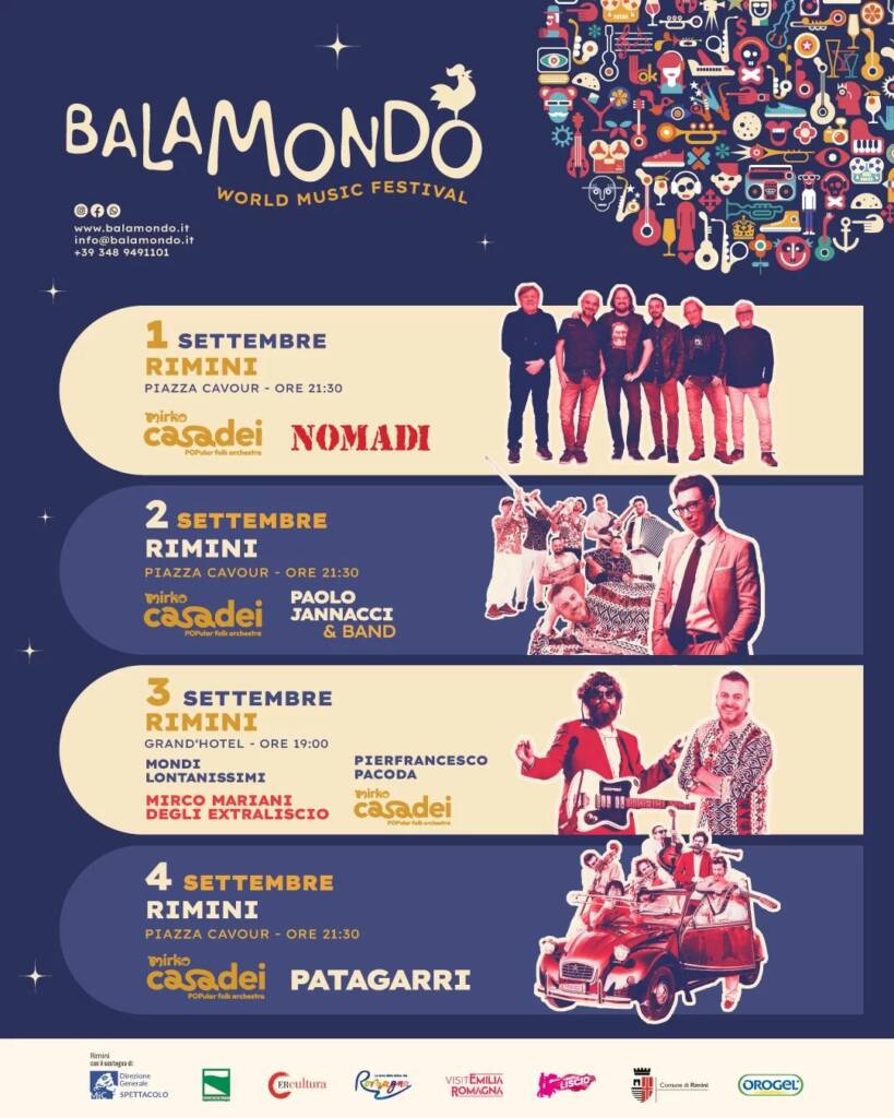 A coronamento di un’altra, splendida ‘Estate di Raoul’, la Mirko Casadei POPular Folk Orchestra torna a Rimini, culla delle musiche che hanno fatto da colonna sonora alle trasformazioni sociali dell’Italia, per i tre giorni di Balamondo, il ‘World Music Festival’ che ogni anno ha lo straordinario potere di fare della città balneare la più eccitante balera a cielo aperto che si possa immaginare.