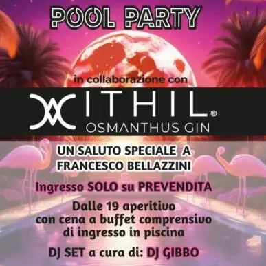 Aperitivo con Dj set in piscina con prosecco incluso e cena a Buffet.