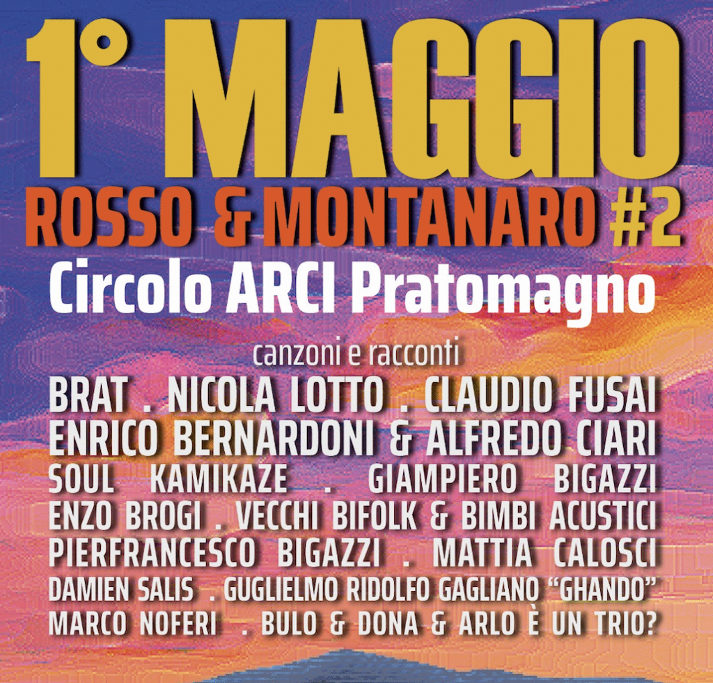 Per la festa internazionale dei lavoratori ci sarà anche un 1° Maggio, intitolato con un po’ di ironia - ma non troppo - "Rosso e Montanaro”, al Circolo ARCI Pratomagno di Modine e Gorgiti, frazioni di Loro Ciuffenna. È la seconda edizione e dalle ore 16 (“fino a quando non fa freddo”) si alternerà una fitta schiera di musicisti e cantautori amici e collaboratori della Materiali Sonori che hanno risposto all’invito di Arlo Bigazzi e dell'attivissimo Circolo di Modine-Gorgiti.