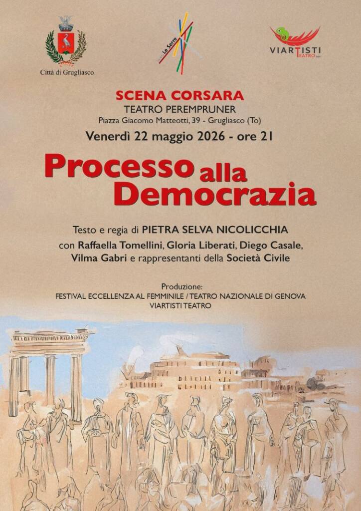 Il palcoscenico si trasformerà in un'aula di tribunale dove si svolgerà un vero e proprio Processo alla Democrazia: accusa, difesa, testimoni, presidente del tribunale e il pubblico a cui spetta, come giuria, il verdetto finale.