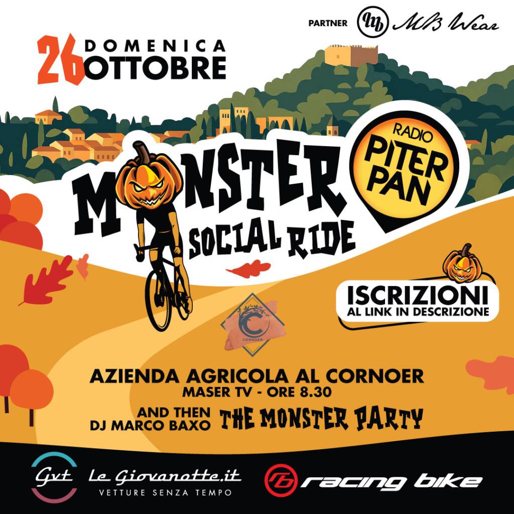 UNA GIORNATA INDIMENTICABILE CHE INIZIERÀ CON LA PEDALATA DEL MATTINO (50km circa) PER POI PROSEGUIRE CON IL PARTY TARGATO RADIO PITERPAN DJ SET MARCO BAXO, TUTTO ACCOMPAGNATO DA OTTIMO CIBO E DRINK AD OLTRANZA.