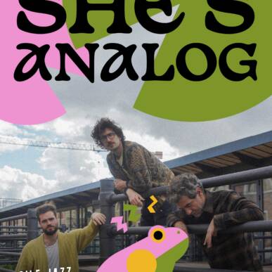 composizione e improvvisazione, dove ogni brano nasce da un’intuizione fragile e si apre a forme sonore imprevedibili. Il trio costruisce paesaggi sonori dove jazz, elettronica, minimalismo e post-rock si fondono in una trama collettiva in cui le fonti sonore si confondono, e la forma diventa il riflesso di un altrove interiore. Con alle spalle concerti in Italia e all’estero e il riconoscimento del 12 Points Festival, She’s Analog si conferma una delle voci più originali della nuova scena europea.