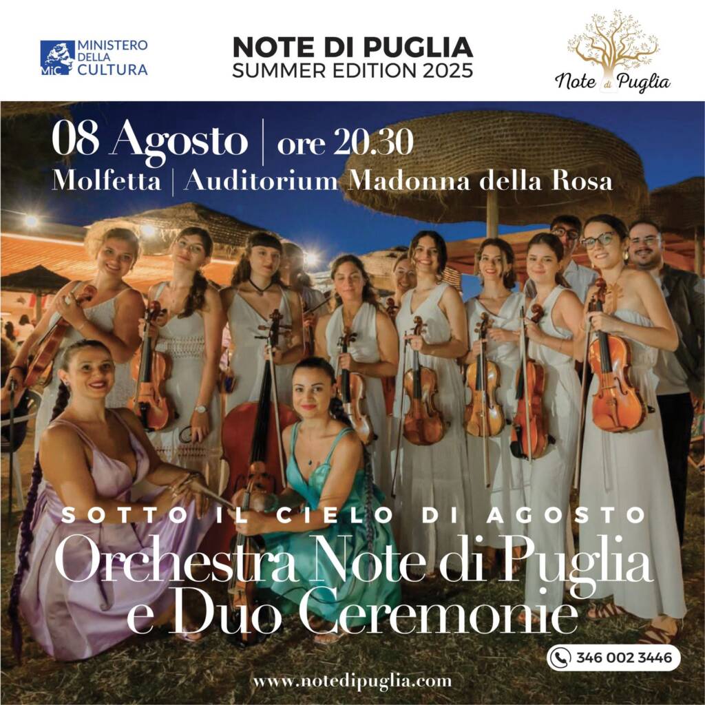 L’Orchestra Femminile Note di Puglia, diretta da talento e sensibilità tutta al femminile, incontra la voce e il fascino del Duo Cérémonie, un duo di cantanti capace di reinterpretare con classe e passione alcuni dei brani più amati del repertorio italiano e internazionale.