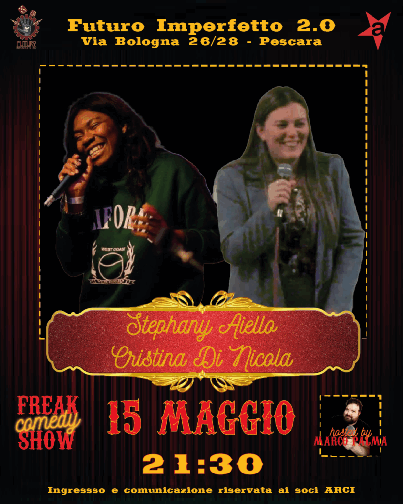 Ottavo appuntamento con la seconda stagione di Freak Comedy Show, sul palco di Futuro Imperfetto 2.0 ci saranno Stephany Aiello e Cristina Di Nicola.
