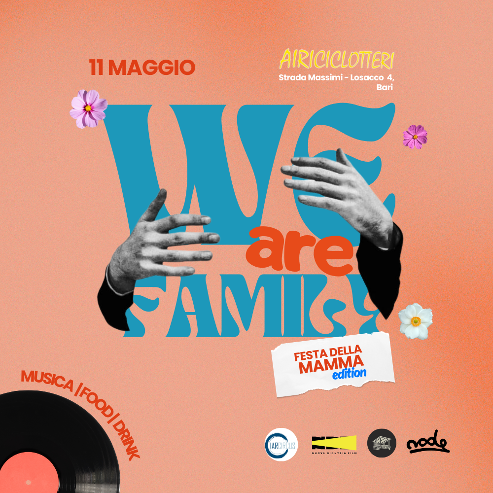Prepara plaid, sorrisi e voglia di stare insieme: We Are Family è la tua Festa della mamma alternativa, un'intera giornata di musica, relax e divertimento a Bari!